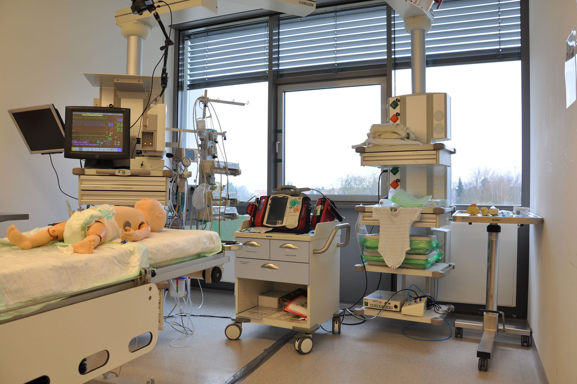 - Aufbau eines Säuglings- oder Kinder- Simulators in einem Intensivzimmer, einem Patientenzimmer oder einem Notfallraum Ihrer Klinik.